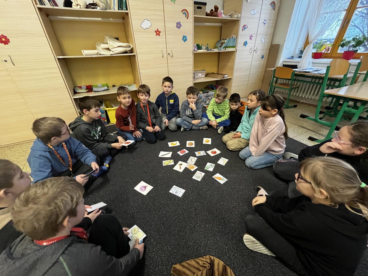 Žáci si hodinu anglického jazyka velmi užili, dokonce si ji prodloužili i do přestávky, kdy vyndali své boxy se svačinou a začali anglicky vyjmenovávat, co si kdo z domova k svačině donesl.