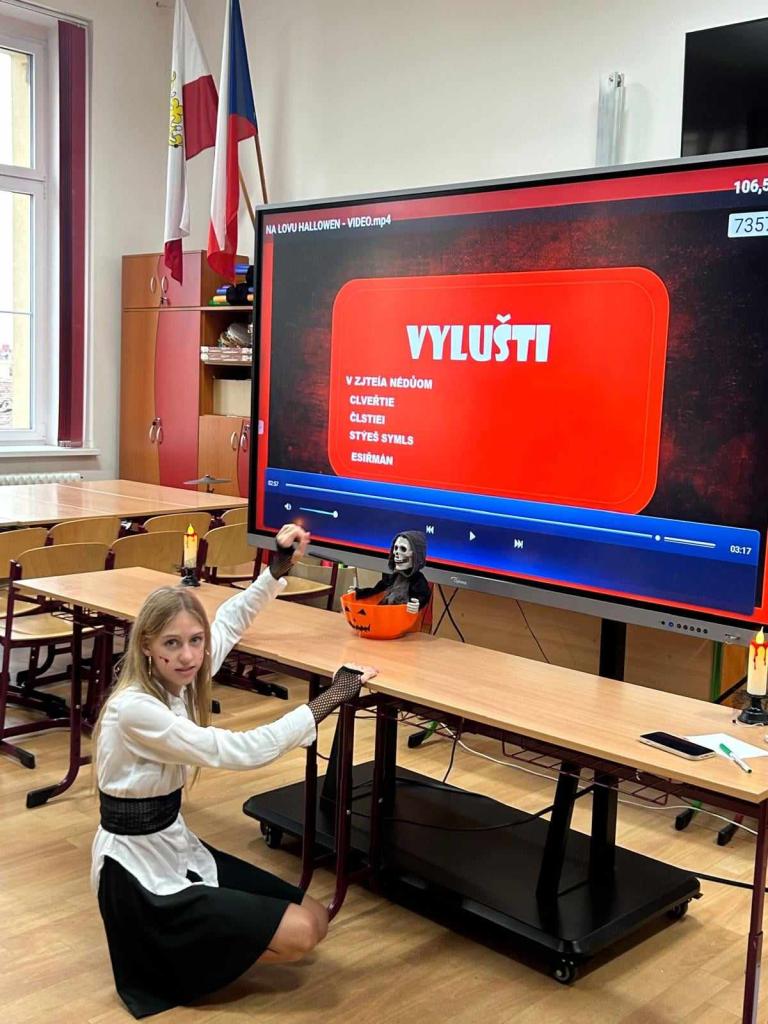 Ten den mohli všichni přijít do školy v halloweensky typických kostýmech. V hodinách angličtiny probíhaly různé hry a soutěže týkající se oslav v jiných zemích, některé třídy připravily v rámci výtvarné výchovy halloweenskou výzdobu, svou celoškolní akci připravil školní parlament. Pro první stupeň zorganizovali členové halloweenskou stezku po škole, kde děti plnily úkoly. Pro druhý stupeň pak byl připraven vědomostní kvíz. Z každé třídy se přihlásilo sedm soutěžících a týmy se mezi sebou utkaly. Vítězem se stala IX. B.
