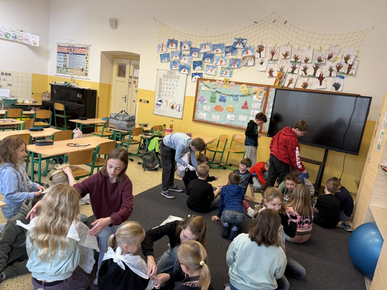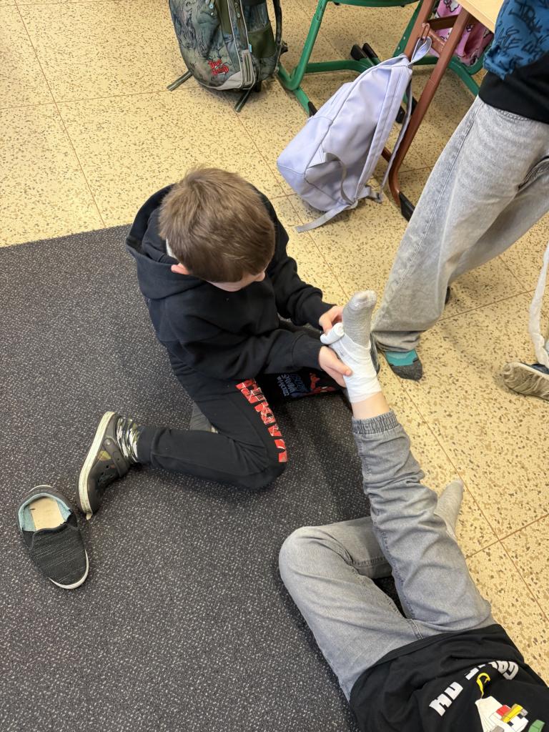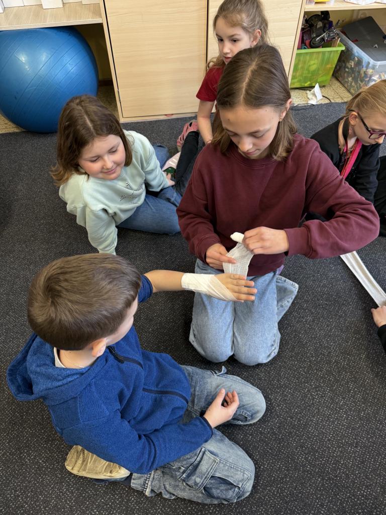 Bylo úžasné sledovat, s jakou trpělivostí páťáci vše vysvětlovali a jak šikovní byli druháci při samotném obvazování. Ukázalo se, že když jde o pomoc druhým, dokážeme táhnout za jeden provaz bez ohledu na věk.