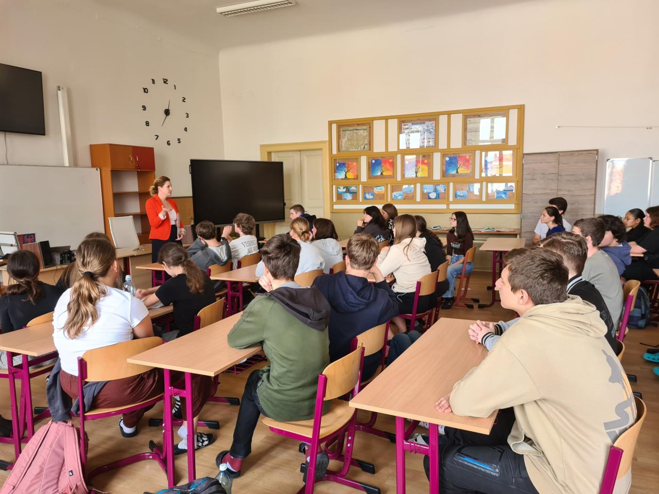 Paní Jana Březinová, mimochodem absolventka naší školy, se v oblasti pojišťovnictví a finančnictví pohybuje již 13 let. Seznámila žáky s jednotlivými finančními produkty, zmínila důležitost pojištění i to, proti čemu všemu se lze pojistit, a informovala o legislativních změnách v této oblasti. Společně jsme během besedy narazili i na psychologický aspekt, kdy si žáci posteskli, že se cítí nepřijati vrstevníky, pokud nemají drahé, značkové oblečení či vybavení. V tomto směru na ně doba klade velké nároky. I s tímto je třeba v předmětu finanční gramotnost pracovat. Paní Březinové tímto ještě jednou děkujeme, věřím, že přednáška byla pro žáky přínosná.