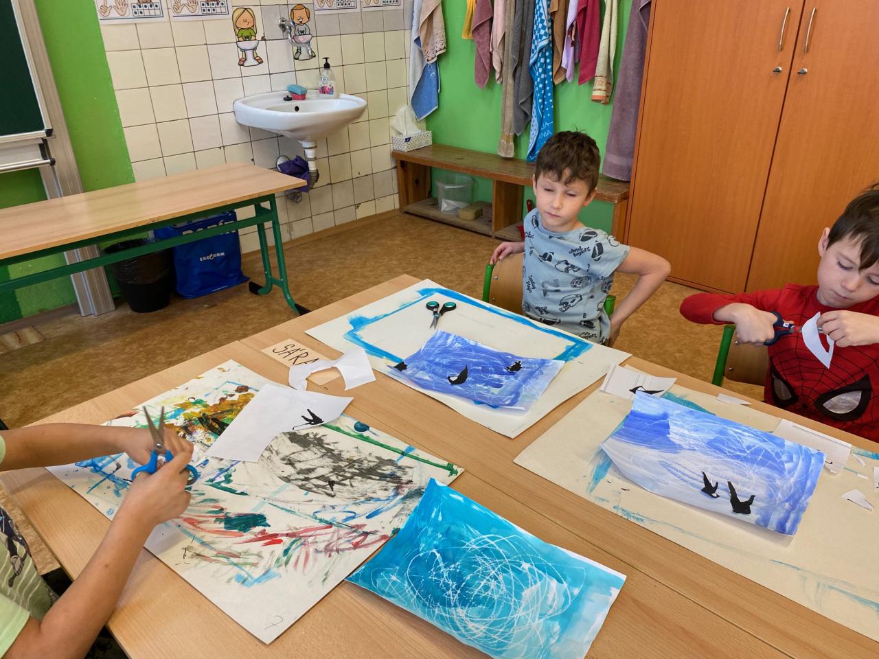 V přípravné třídě se děti učí o zimních sportech nejen prakticky, ale i kreativně. Na výtvarce