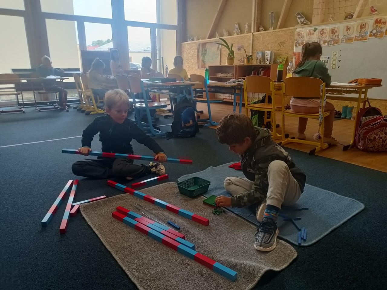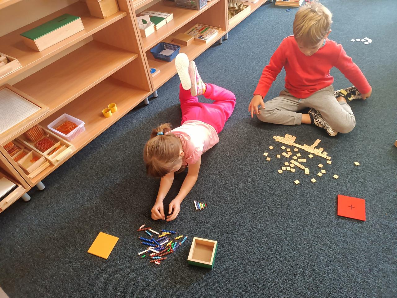 Zatím se děti v naší montessori skupině rozkoukávají a zvykají si na režim dopoledních činností. Je vidět, že je poznávání a objevování nového baví, pomalu si zvykají na ticho i na respektování druhých.