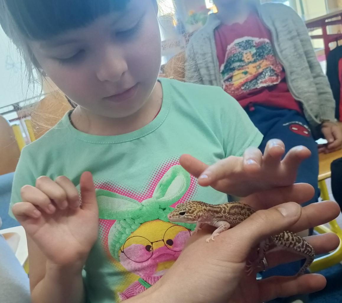 Na začátku dostaly děti za úkol vyjmenovat všechny schopnosti, ve kterých jsou filmoví hrdinové Batman a Spiderman velmi dobří. V prezentaci jsme se pak dozvěděli, v čem jsou někteří plazi podobně výjimeční a tuto výjimečnost jsme následně porovnávali i s jinými živočichy. Hodně zajímavé pro děti bylo, že si každý, kdo měl odvahu, mohl pohladit nebo vzít do ruky gekončíka, krajtu nebo užovku červenou. Dále si mohly děti prohlédnout zblízka např. mloka skvrnitého naloženého v lihu. Chovat živého skvrnitého mloka se v naší zemi nesmí, mlok je totiž chráněný. Také jsme si potěžkali krunýře několika želv nebo svlečky různých hadů. Překvapilo nás, že se had svléká v celku (na kůži jsou vidět blanky, pod kterými má had oči).