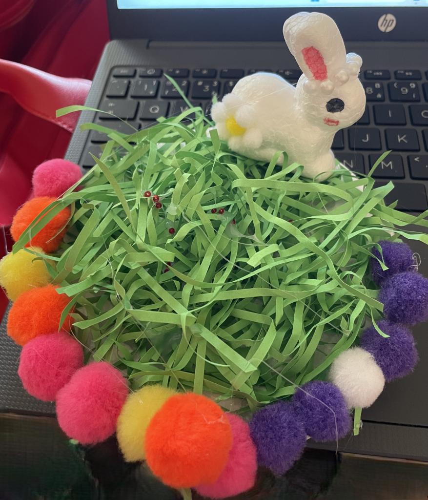 V hodině, která proběhla 15. dubna před velikonočními prázdninami, si děti vyrobily pro zútulnění svých domovů a pro své potěšení dekoraci v duchu velikonočních tradic. Paní učitelka si pro děti připravila dekorační předměty s velikonoční tematikou, jako byli polystyrenoví zajíčci, které si děti dle svého vkusu domalovaly pomocí fixových barev. Dekoraci doplnily o jarní květiny, zápichy v podobě zajíců, berušky, čtyřlístky a barevné bambulky, které děti využily jako velikonoční vajíčka. Umělou trávu použily jako podklad na polystyrenový podstavec, na něj dolepily předměty pomocí tavných pistolí. Žáci při práci s nimi byli velice opatrní a šikovní.