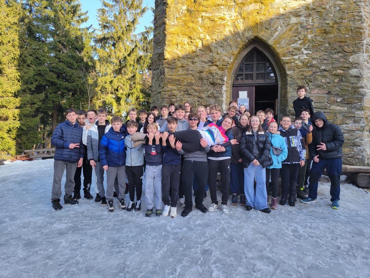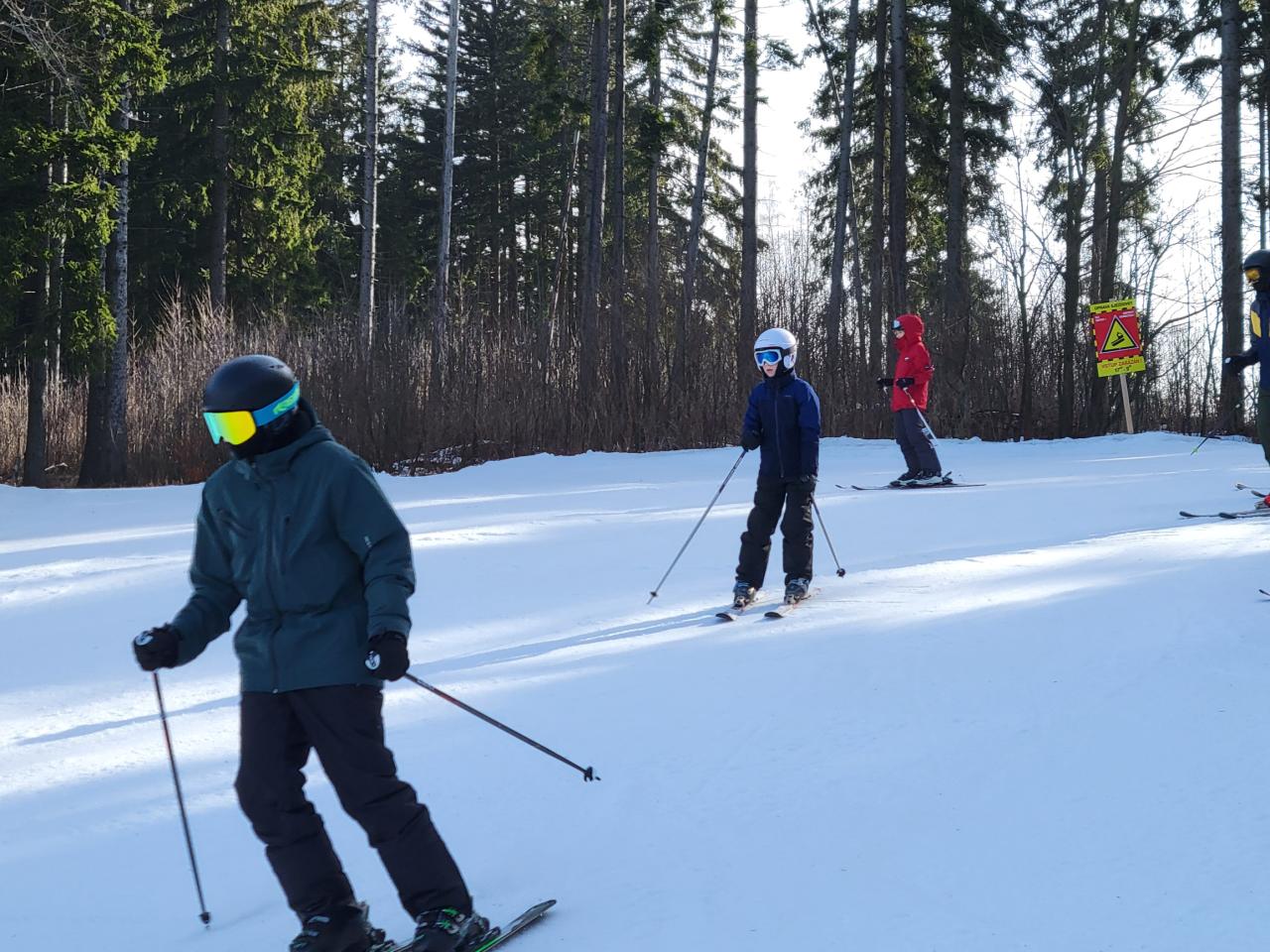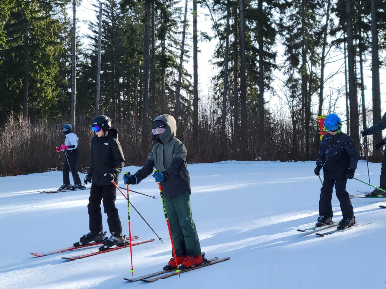 Dopoledne vyrazilo první a druhé družstvo na Kejnos. A že to byla jízda! Svah byl nádherně přituhlý, upravený jako podle pravítka a lyže jen zpívaly a my zlepšovali svůj styl, alespoň někteří. První družstvo se dokonce odvážilo vyzkoušet i černou sjezdovku Lišku. Ano, čtete správně – černou! Všichni to zvládali levou zadní, po přední tu nemusel lyžovat nikdo. Třetí družstvo se dnes zapsalo do historie našich kurzů. Poprvé mělo odvoz lyžařské výstroje autem přímo na svah. Lyže si daly pohodlnější cestu než jejich majitelé. To tu ještě nebylo a myslíme, že o této události se bude ještě dlouho vyprávět.