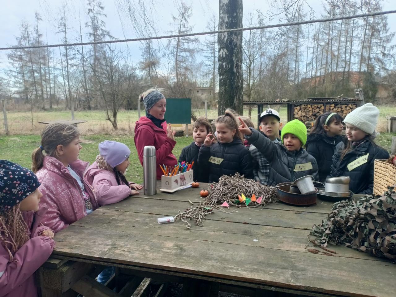 Získané informace žáci využili také při plnění úkolů ve venkovním areálu. Vyhledávali plakáty, podle instrukcí plnili sportovní úkoly a zapisovali správné odpovědi do tabulek. Zajímavostí pro mnohé bylo zjištění, že největší počet čápů v Evropě se nachází v Polsku.