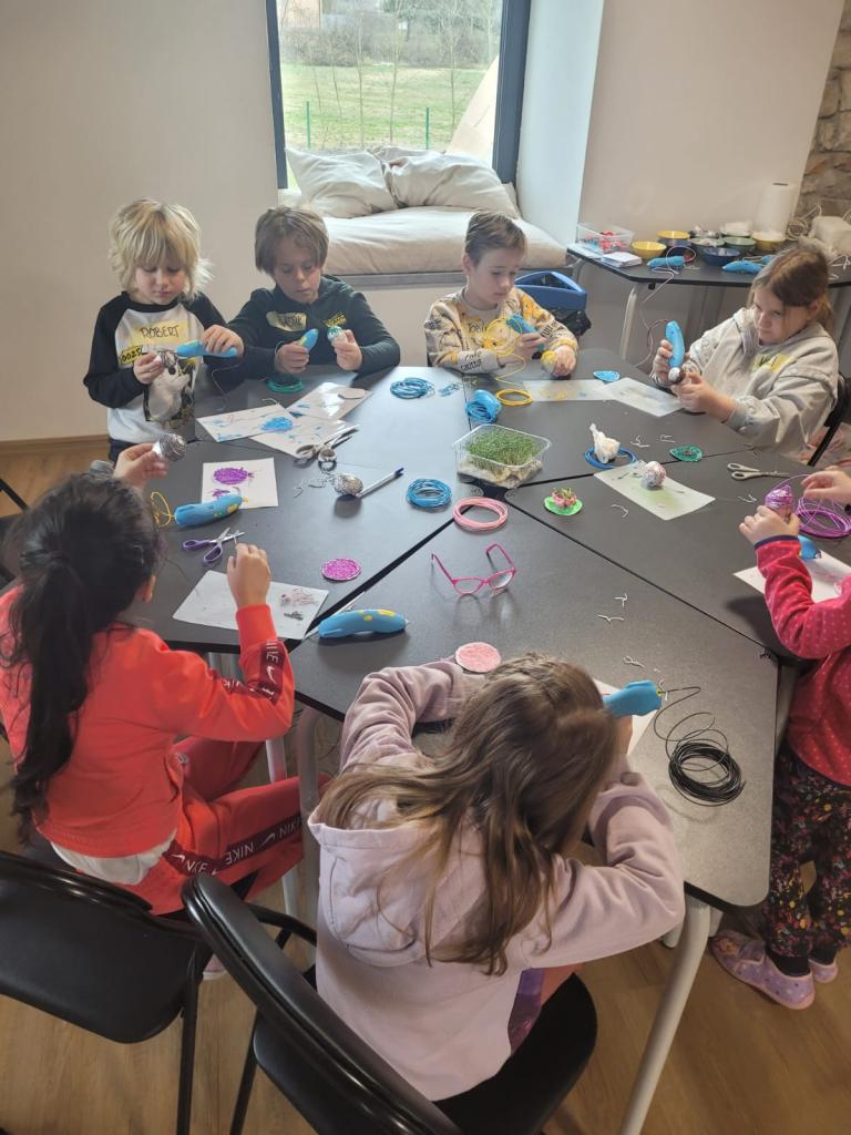 Děti byly rozděleny do tří skupin a postupně prošly třemi stanovišti. Velký úspěch sklidila tvořivá dílna, ve které si děti vyráběly velikonoční košíček s 3 D perem. Do košíčku si následně děti vložily vatu a semínka řeřichy.
